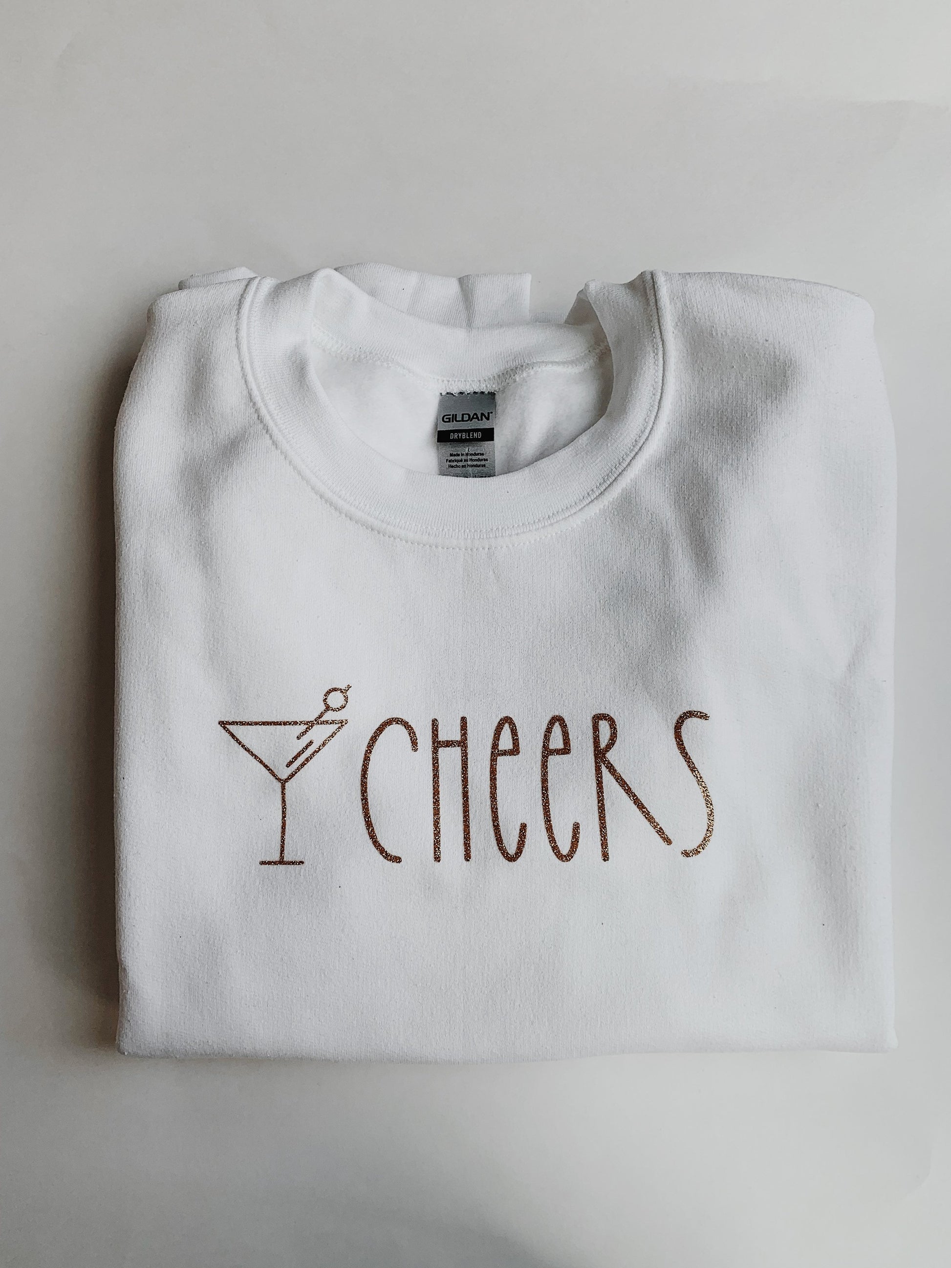 talk about a happy hour shirt! “cheers” is pressed in a gorgeous gold glitter to bring a smile to any day.
