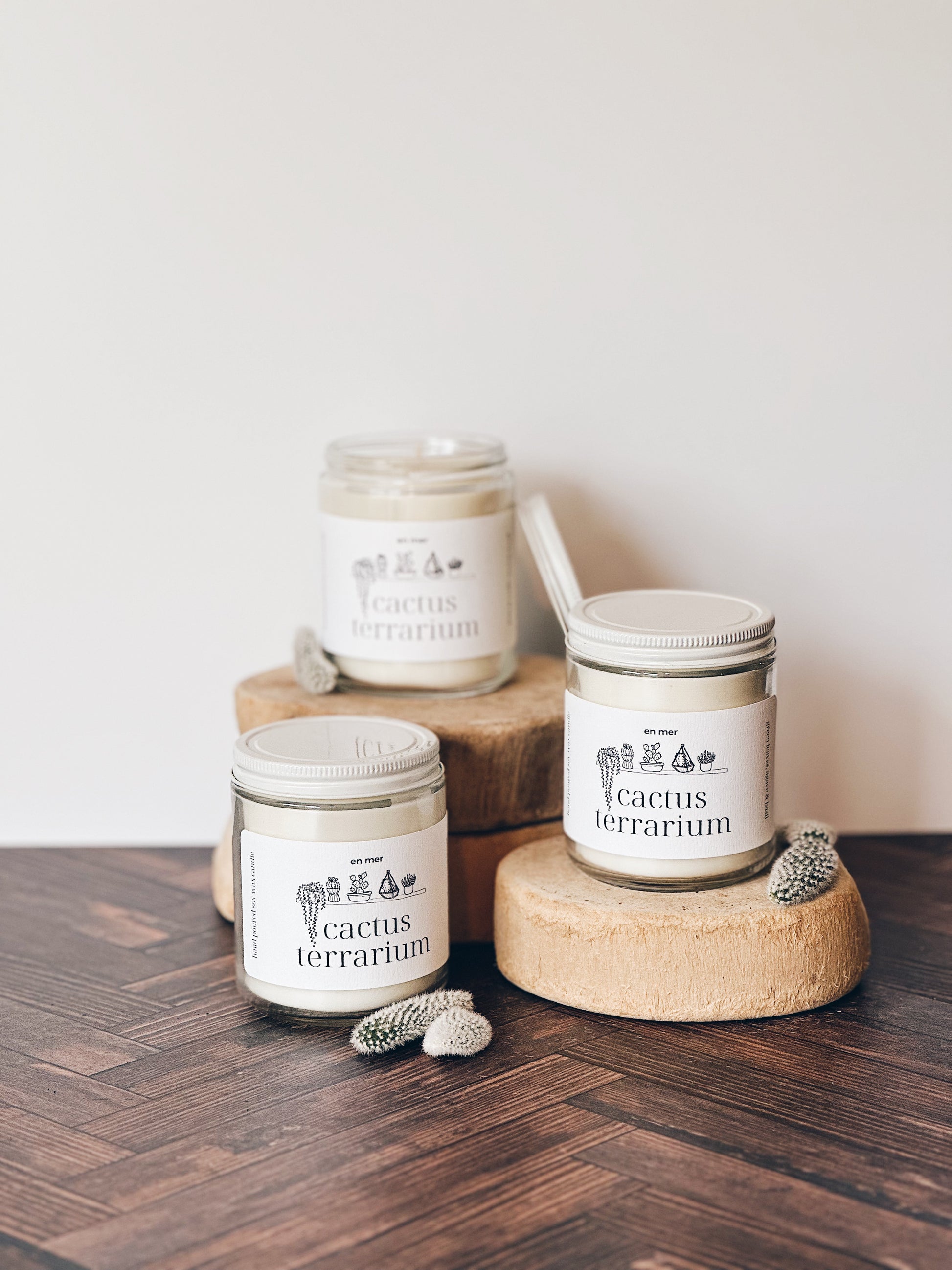 en mer | cactus terrarium | soy wax candle