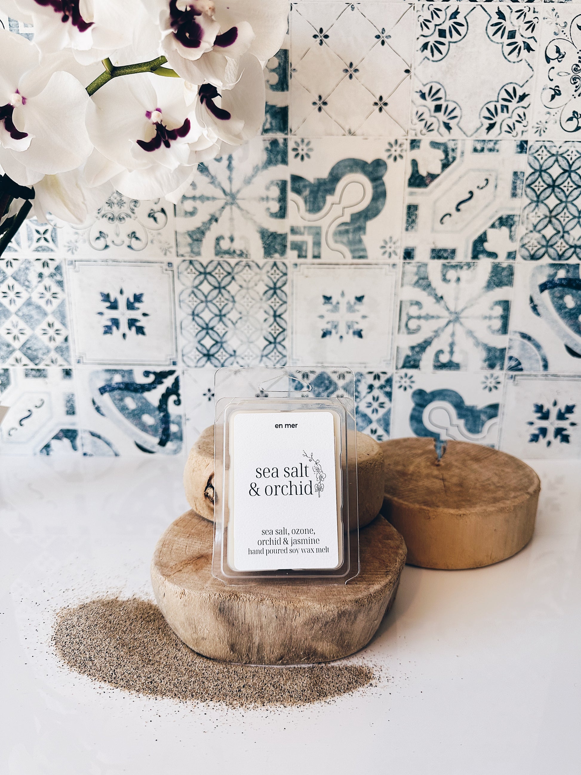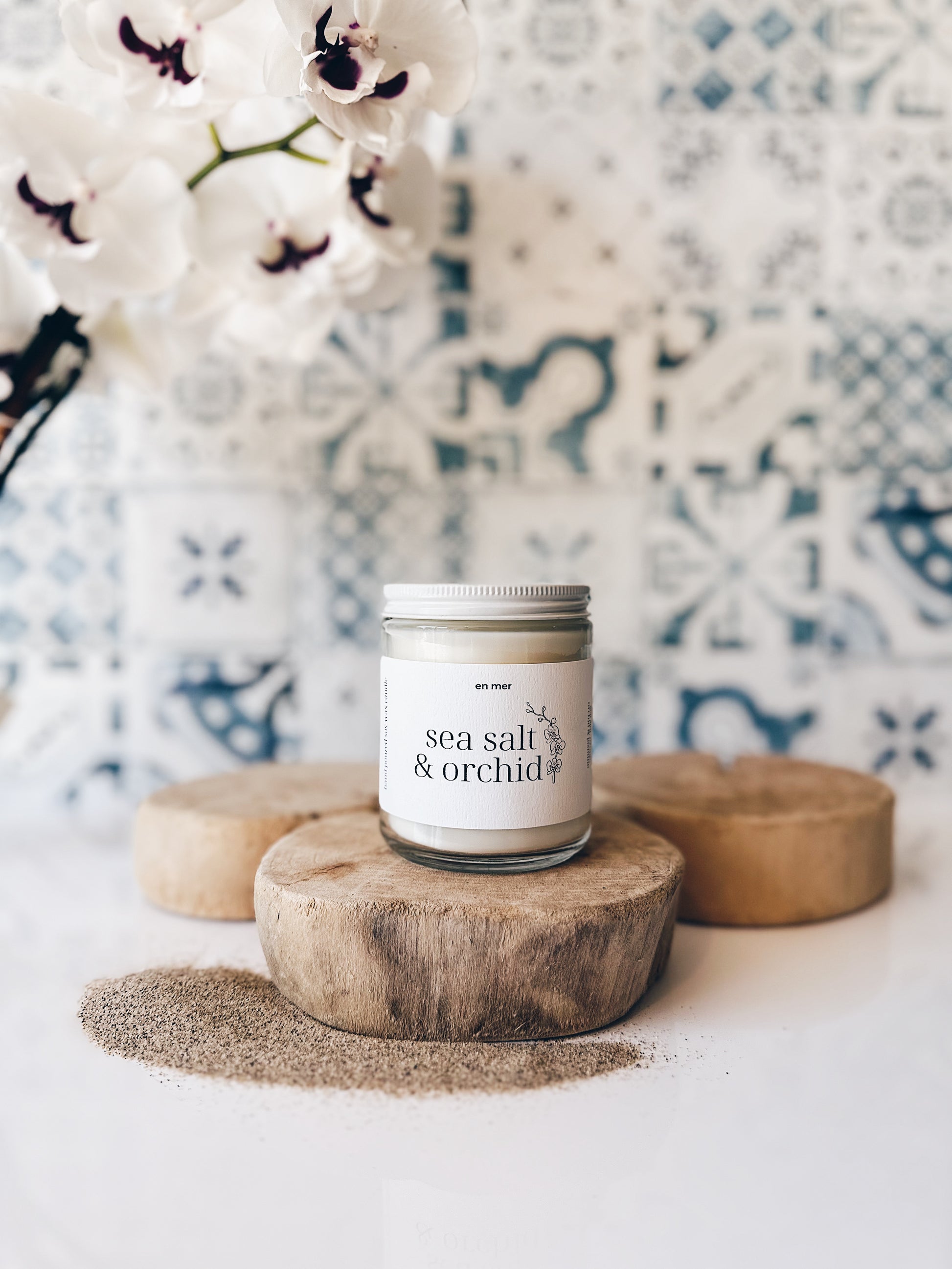 sea salt & orchid carries a soft floral note with marine highlights to capture a floral, beachy, breezy day. this candle is infused with essential oils of orange, lemon, eucalyptus & clove for a subtle but beautiful scent.