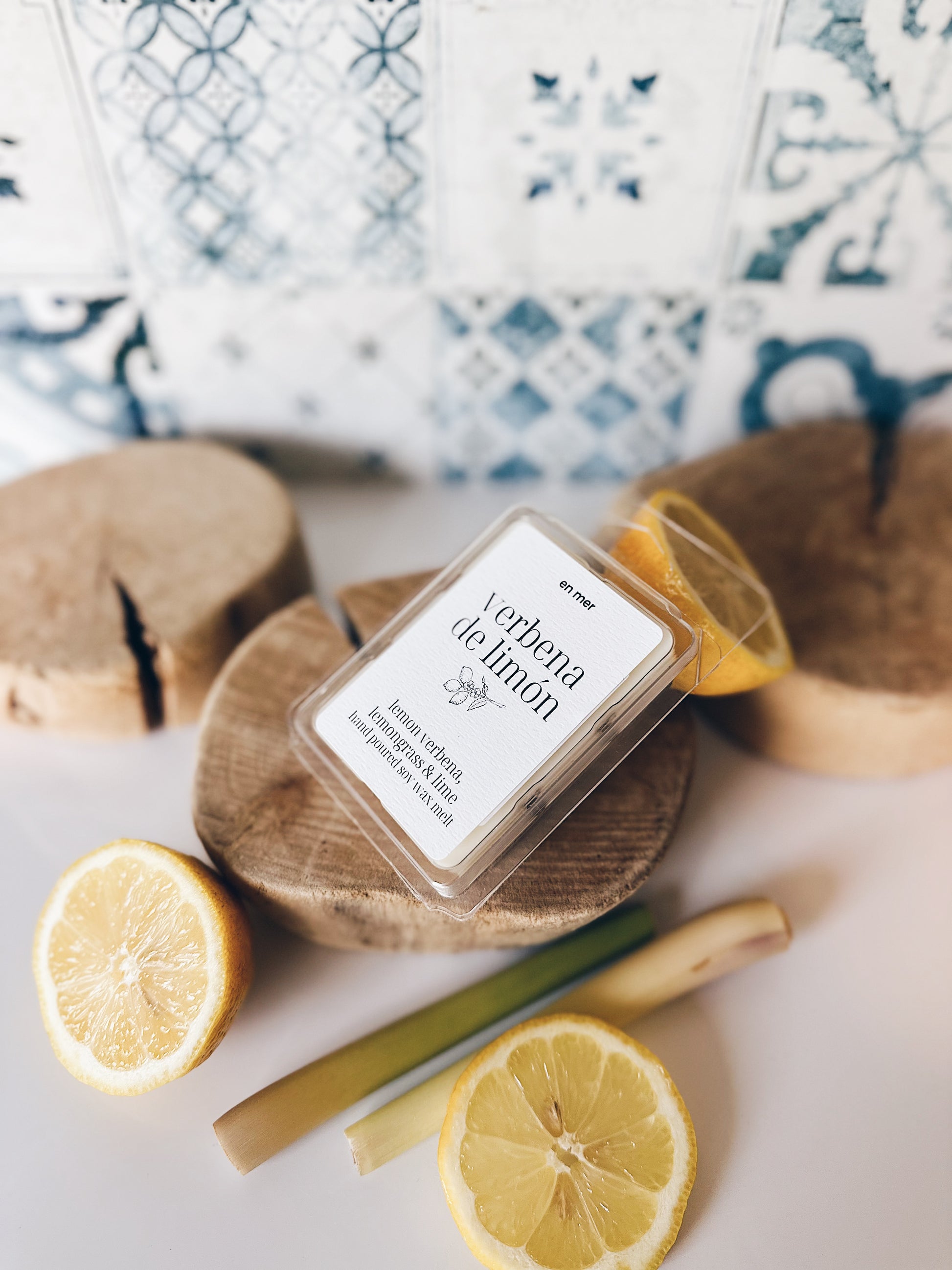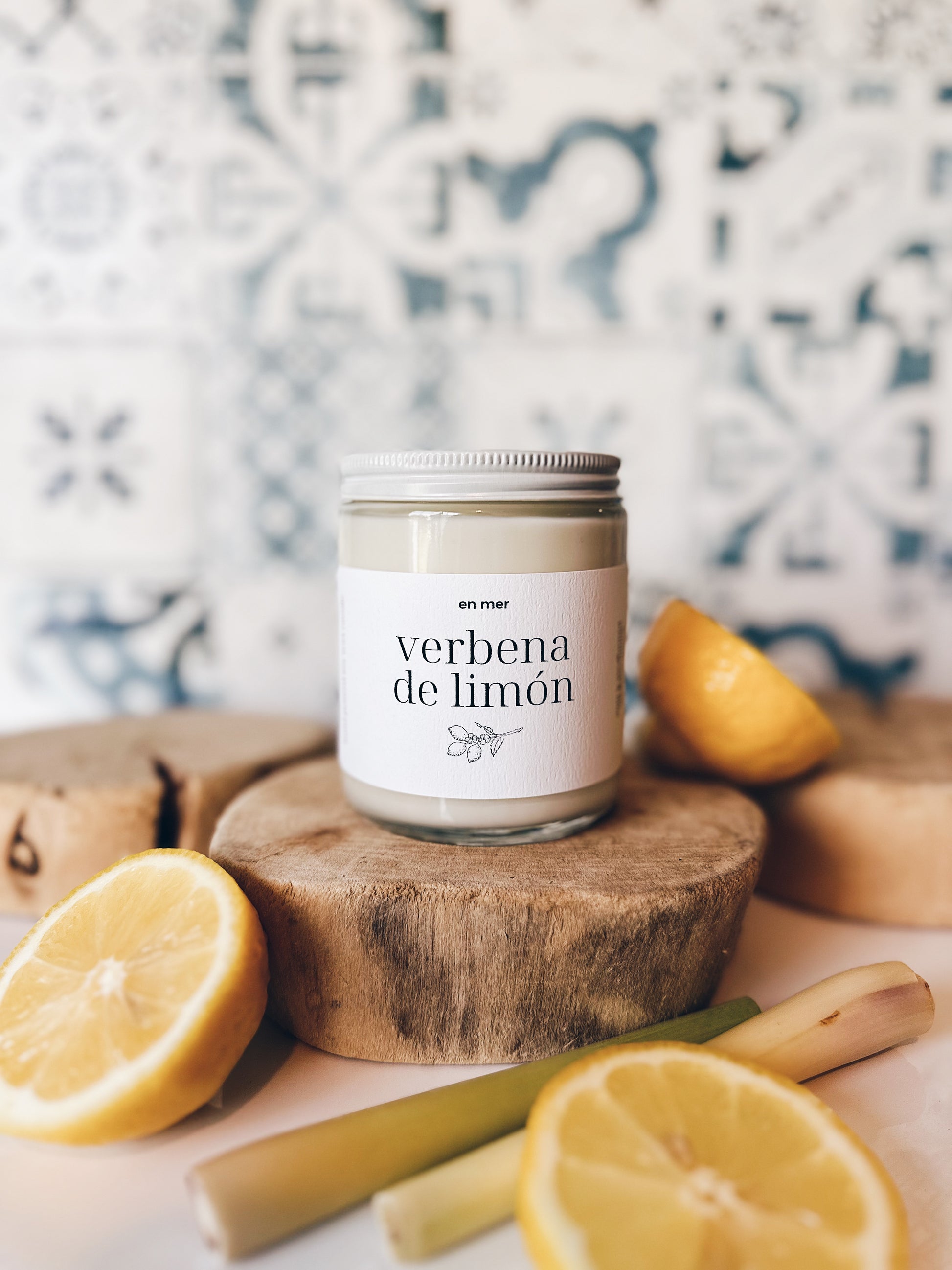 verbena de limón is a crisp and lemony blend with flowery lemon verbena, earthy lemongrass, and sharp lime. a beautiful candle to burn in a kitchen or powder room to brighten up a space.
