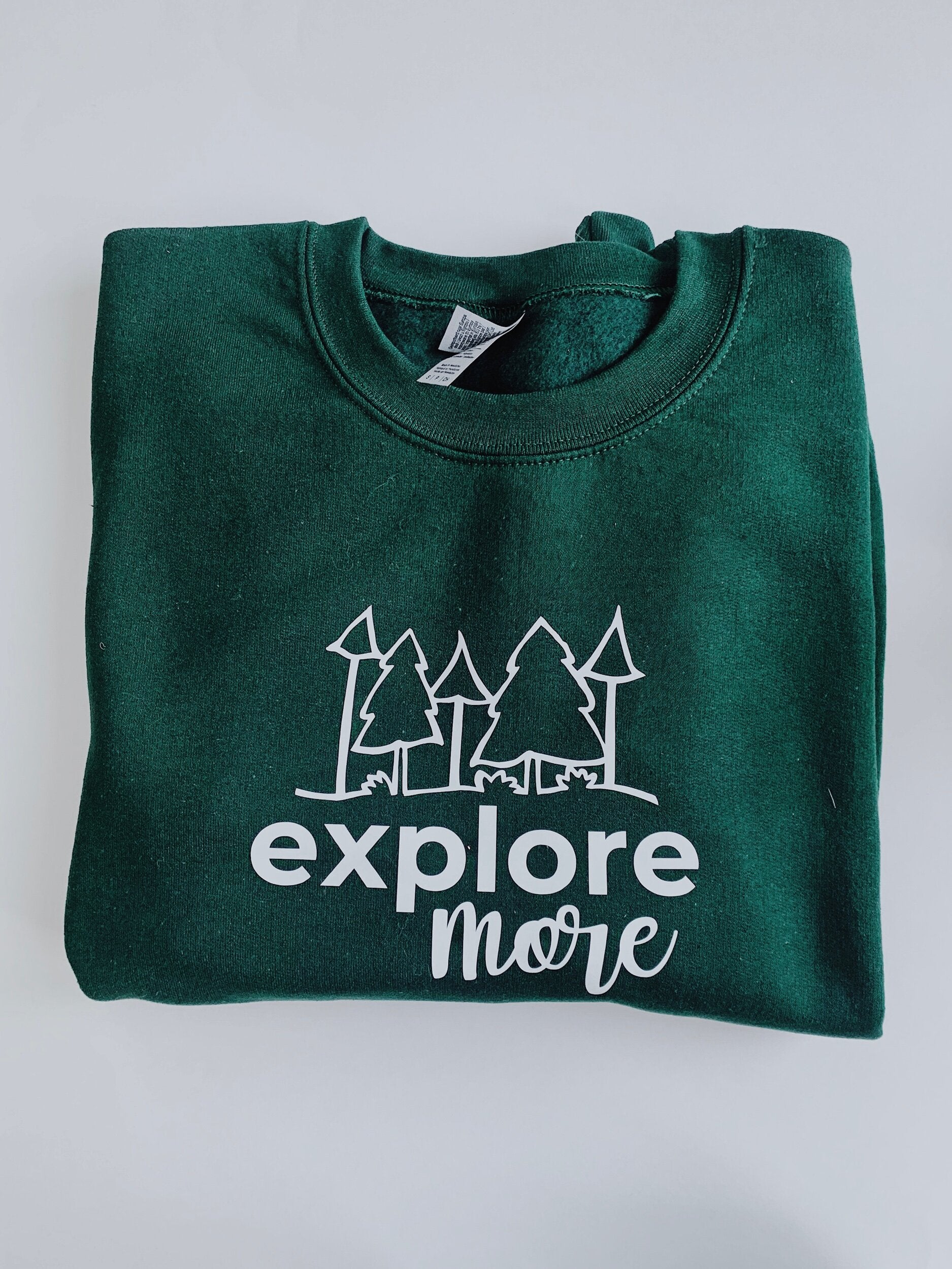 get out there and enjoy the world in this cozy crewneck. perfect for everything from a weekend camping to going out for a walk in the beautiful forest green color.