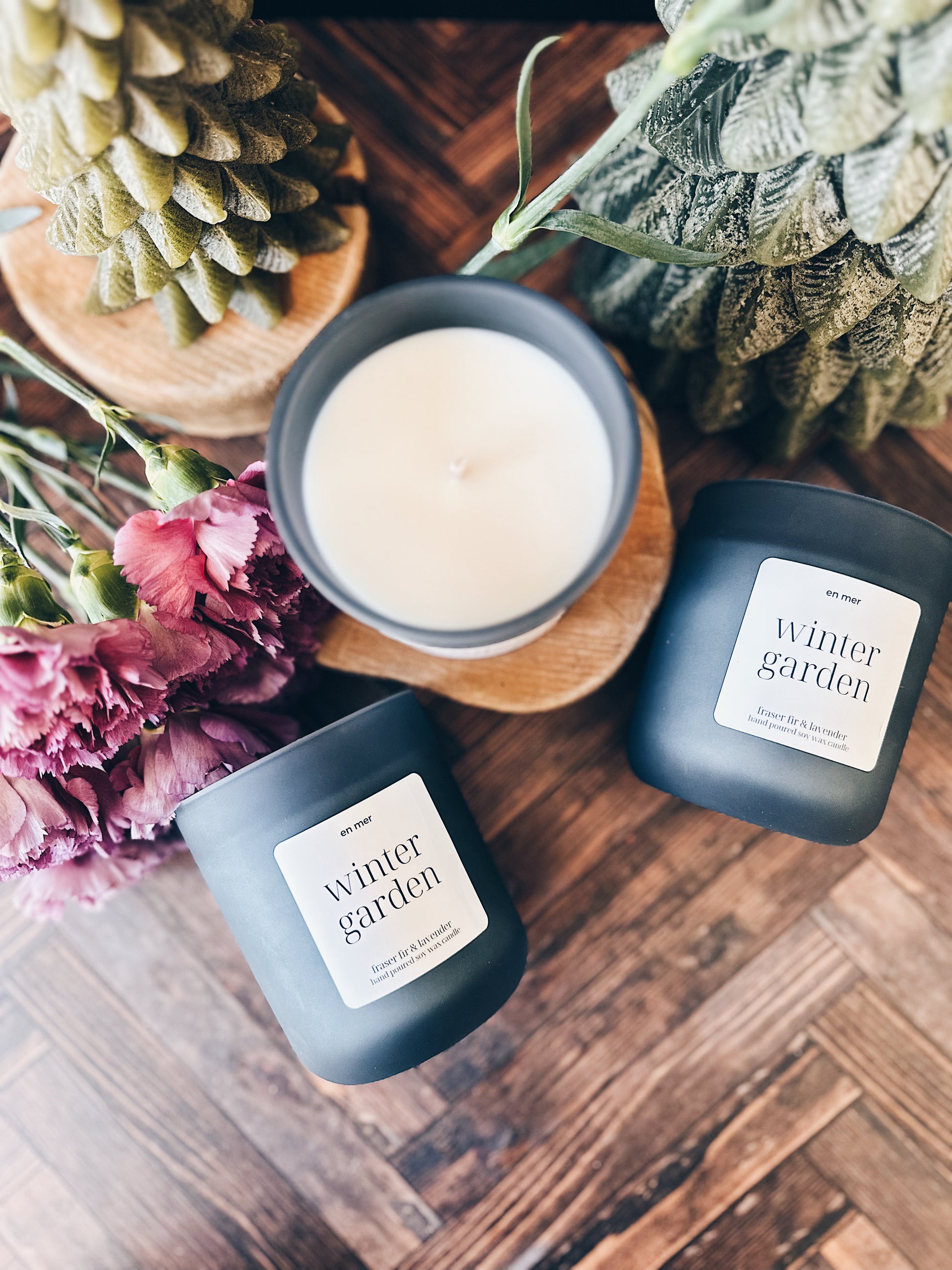 this customer favorite scent is a beautiful & unexpected blend of fraser fir & lavender in a soy wax candle & wax melts. it's crisp, woodsy, calming and enchanting, all at the same time. available in a matte blue glass jar and shimmering label.